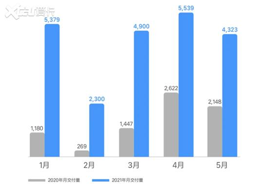 6月2日,理想汽车公布了今年5月份的交付数据。爱卡汽车获悉,理想ONE在上个月共交付4323辆,与2020年5月相比,大幅增长了101.3%。