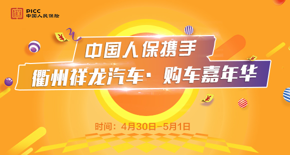 中国人保携手衢州祥龙汽购车嘉年华活动火热报名中。活动时间:4月30日-5月1日,在衢州柯城区浙西大道109号13区举办购车优惠活动。报名热线:13157006381,我们专注办好每一场活动,只为您买到价格实惠的车,为客户提供专业、优质的汽车团购购车体验。